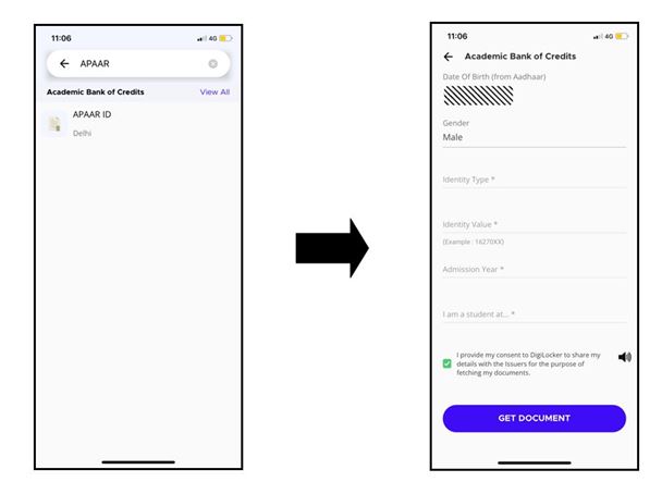 STEP 2: Search Tool -> APAAR ID -> Fill the details as mentioned -> Get Documents