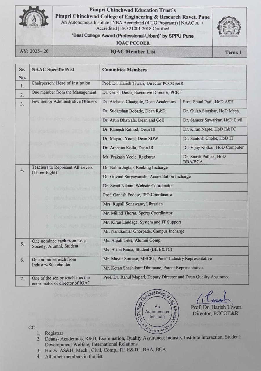 To ensure quality culture as the prime concern for the Higher Education Institutions through institutionalizing and internalizing all the initiatives taken with internal and external support.